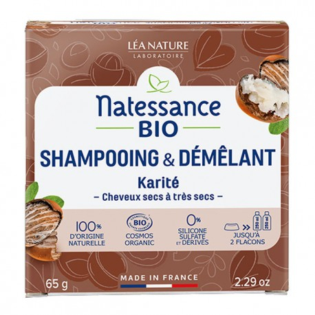 Natessance vous propose ce Shampooing & Démêlant Bio Solide au Karité pour les cheveux très secs, et secs.