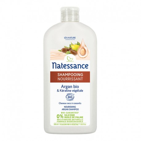Natessance vous propose ce Shampooing Bio Nourrissant à l'argan et à la kératine végétale pour les cheveux secs et cassants.
