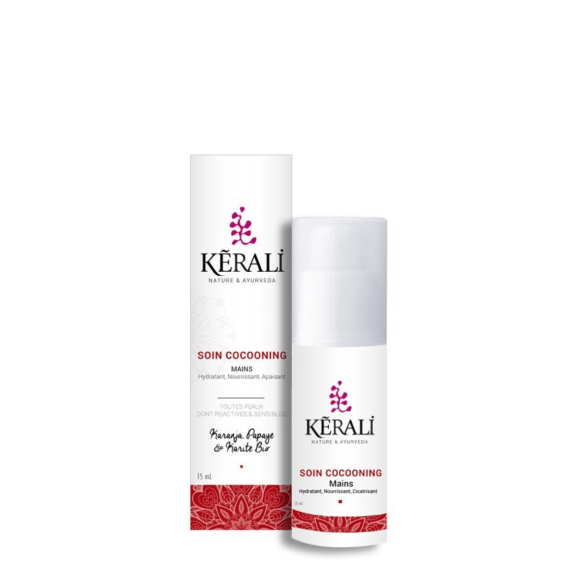 SES BÉNÉFICES Riche en agents hydratants, lipides, vitamines et extraits botaniques, ce SOIN COCOONING Mains est spécialement formulé avec 70% de jus d'Aloe Vera apaisante, du Karité nourrissant, l'huile ayurvédique de Karanja régénérant et une cire d'abeille sauvage, anti-bactérienne, sera protectrice des mains fragilisées. Ses extraits botaniques améliorent l'ensemble de l'hydratation et apaise les inflammations pour retrouver une peau confortable et soyeuse. Idéale pour toute la famille. SON UTILISATION Appliquez une petite dose de LE SOIN COCOONING mains, sur l'ensemble des zones a traiter : mains, pieds ou autres zones sensibles ou sèches. Masser jusqu'a complète pénétration. Renouveler si besoin. SES NOTES Le site indépendant laveritesurlescosmetiques de la journaliste renommée « Rita Stiens » classe les ingrédients des cosmétiques dans des catégories afin de les qualifier. En voici les résultats : : SES INGRÉDIENTS Dans l'ordre d'importance. INCI SOIN COCOONING MAINS: Aloe barbadensis leaf juice* (70%), pongamia glabra seed oil*, cocos nucifera oil*, aqua°, butyropspermum parkii butter*, cetyl alcohol°, caprylic capric triglyceride°, glycerin**, glyceryl stearate°, cetearyl alcohol°, benzyl alcohol°, stearic acid°, sodium lauroyl glutamate°, cera flava°, tocopherol°, carica papaya fruit extract*, laminaria ochroleuca extract°, santalum album oil°, dehydroacetic acid, alaria esculenta extract°, jasminum sambac flower extract°, biosaccharide gum-1°, elettaria cardamomum seed oil*, citric acid°, sodium benzoate, potassium sorbate°. Benzyl benzoate, farnesol°, limonene°, linalool°. 98,8% du total est d’origine naturelle. 86,2% du total des ingrédients sont issus de l’Agriculture Biologique. TRADUCTION SOIN COCOONING MAINS: Jus d’Aloe Vera BiO, Huile de Karanja BiO, Huile de Coco BiO, Eau (issue de l’extraction de plantes), Beurre de Karité BiO, Emollient (issu du coco), Huile hydrolysée issue du Coco, Emollient (issu de l’olive), Emollient (issu du coco), Benzyl alcohol (conservateur « nature-identique » et biodégradable), Epaississant (issu du coco), Emulsionnant (issu du blé), Cire d’abeilles sauvages, Vitamine E (issu du soja), Extrait de Papaye, Extrait d’algues brunes, Huile de bois de Santal, acide dehydroacetique (conservateur « nature-identique » et biodégradable), Extrait d’algues marine, Huile essentielle de Jasmin sambac, Epaississant (issu de sucres), Huile essentielle d’Ylang-ylang, Huile essentielle de Cardamome, acide citrique (issu du citron). Composés aromatiques naturellement présents dans les autres ingrédients: Benzyl benzoate, farnesol°, limonene°, linalool°. 98,8%du total est d’origine naturelle, 1,2% synthétique « nature-identique » et « biodégradable ». 86,2%du total des ingrédients sont issus de l’Agriculture Biologique, le reste sont "plantes sauvages" ou 1,2% synthétique.