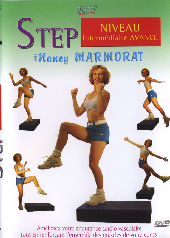 Nancy Marmorat, professeur de danse, stretching et gym tonique vous propose d'augmenter votre endurance cardio-vasculaire tout en vous renforçant musculairement. Le step vous permettra de travailler votre coordination musculaire tout en éliminant des calories. Les enchaînements utilisent tous les mouvements de base du Step. #Sommaire: 1. Echauffement 2. Apprentssage de la chorégraphie (Blocs 1 à 3) 3. Chorégraphie finale 4. Stretching 5. Présentation des pas
