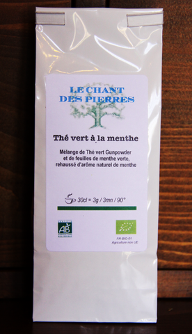 Mélange de thé vert Gunpowder et de feuilles de menthe verte, réhaussé d'arôme naturel de menthe. Pour 300ml d'eau à 90°, laissez infuser 3g de thé 3 minutes