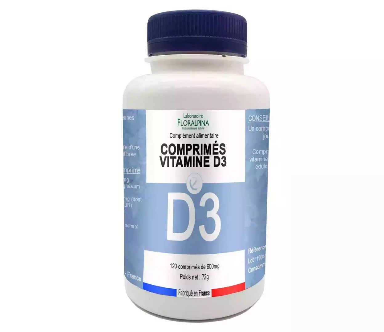 Ingrédients pour 1 journée (1 comprimé) : Ingrédients Composition AJR** Sorbitol (édulcorant) 587, 8 mg / Stéarate de magnésium (lubrifiant) 9,6 mg / Vitamine D3 100 000 UI/g 5 µg (soit 200 UI*) 100 % Arôme naturel fraise 0,6 mg / * Unités Internationales **AJR = Apports Journaliers Recommandés
